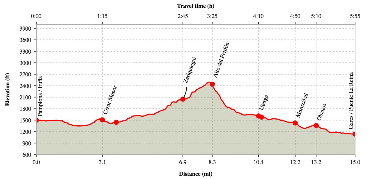 Even though we're starting in Pamplona, which bypasses the Pyrenees mountains separating France from Northern Spain, the first stage of our journey will indeed take us over a small mountain, the top of which is paradoxically titled Alto de Perdón or The Summit of Forgiveness. Imagine that! My Camino will begin with making an ascent. Have a look: